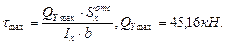 Прочность балки по нормальным напряжениям обеспечена. Проверим прочность балки по касательным напряжениям: