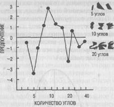Рис. 4.1Э. Оценки предпочтения плоских фигур различной степени сложности (определяемой количеством углов) (Munsinger, Kessen, 1964, p. 7,11) В отличие от Хебба (Hebb, 1955) или Фиске и Мадди (Fiske, Maddi, 1961) у Бер-лайна уровень активации представляет собой не монотонную линейную функцию потенциала возбуждения (или потока стимуляции), а, скорее, U-образную зависимость. Это означает, что уровень активации повышает не только высокий, но и низкий потенциал возбуждения. Берлайн (Berlyne, I960) считает установленным фактом, что скука и монотонность стимуляции сопровождаются высоким, возбуждающим уровнем активации. Таким образом, мы пришли к постулату о подкрепляющей функции уровня активации. Подкрепляющий эффект оказывает все то, что понижает уровень активации. В этом точка зрения Берлайна полностью согласуется с халлов-ским постулатом о подкреплении путем редукции влечения. Вместе с тем утверждается, что вследствие U-образной зависимости между потенциалом возбуждения и активацией повышение низкого потенциала, возбуждения и понижение высокого уровня до среднего в равной мере желательны и выступают как положительное подкрепление (Berlyne, 1967), поскольку в обоих случаях происходит понижение уровня активации и возникают оптимальные условия для специфических форм поведения. В случае слишком высокого потенциала возбуждения возникает «конкретно-исследовательское поведение», направленное на поиск локальных ориентиров и причинно-следственных связей в некоторой узкой предметной области. Эта форма поведения в быту отчасти отождествляется с любопытством. В случае слишком низкого потенциапа возбуждения начинает функционировать «отвлеченно-исследовательское поведение», позволяющее переключиться на новые предметные области, развлечься, отдохнуть (мотивом его часто является скука). Приведем в качестве примера конкретное исследование (Berlyne, Crozier, 1971). Испытуемые должны были выбрать из ряда более или менее сложных стимульных конфигураций ту, которая им больше всего нравилась. Одна подгруппа испытуемых непосредственно перед предъявлением каждого образца в течение 3,5 с находилась в помещении с сумеречным, бедным стимуляцией освещении. Другая должна была вместо этого разглядывать очень сложные, т. е. сильно возбуждающие, стимульные конфигурации. Испытуемые второй подгруппы сразу после этого вы- бирали более простые конфигурации, в то время как испытуемые,предварительно находившиеся в условиях обедненной стимуляции, предпочитали более сложные и неожиданные узоры. В обеих подгруппах оптимальный показатель уровня активации был заметно сдвинут соответственно влево и вправо, так что в первом случае стимуляция, повышающая активацию, воспринималась положительно и ей оказывалось предпочтение (отвлеченно-исследовательская реакция), а во втором случае приветствовались и предпочитались стимулы, понижающие активацию (конкретно-исследовательская реакция).