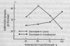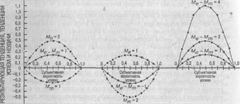 В 1957 г. Аткинсон опубликовал статью, которая называлась «Мотивационные детерминанты рискованного поведения» и на протяжении следующих 15 лет была, пожалуй, наиболее цитируемой и самой влиятельной публикацией в сфере иссле- дований мотивации. Предложенная Аткинсоном модель, предсказывающая выбор индивидом уровня сложности задания, стала продолжением теории результирующей валентности Левина, Дембо, Фестингера и Сирса (Lewin, Dembo, Festinger, Sears, 1944). Выдвинув свою теорию, Аткиисон перешел от объяснения поведения со второго взгляда К объяснению поведения с третьего взгляда, так как к ситуационным компонентам ценности и ожидания он добавил еще и личностный компонент — степень индивидуальной выраженности мотива. Говоря точнее, Аткинсон отчасти расширил понимание результирующей направленной валентности Левина и его соавторов, а отчасти лишь слегка изменил его. Во-первых, он связал обе умножаемые на ожидание ценности — для случаев успеха и неуспеха — еще и с личностным параметром силы мотива. Ценность успеха стала пропорциональной «мотиву достижения успеха» (мотиву успеха), а ценность неуспеха стала пропорциональной «мотиву избежания неуспеха» (мотиву неуспеха). Во-вторых,вместо левиновского понятия валентности (являвшейся функцией от напряжения потребности t и воспринимаемой природы целевого объекта G) он описал ценность успеха и неуспеха с помощью понятия побудительности. Побудительность успеха или неуспеха при выполнении определенного задания определяется лишь воспринимаемой сложностью этого задания, но не зависит от силы мотива или мотивации (в отличие от t). Разумеется, воспринимаемая сложность задания (как и в теории результирующей валентности) зависит и от индивида, а именно от того, насколько он чувствует себя способным справиться с этим заданием (Atkinson, 1964, р. 254). В-третьих,субъективные вероятности успеха и неуспеха Аткинсон рассматривал как взаимодополняющие величины. Вероятность успеха (We) и вероятность неуспеха (Wm) в сумме составляют единицу: We + Wm = 1,00 (т.е. Wm = 1 - We) В-четвертых,величины ценности и ожидания варьировались у него не независимо друг от друга, но он постулировал четкую обратно пропорциональную связь между субъективной вероятностью и побудительностью. Эта связь соответствует повседневному, эмпирически подтверждающемуся опыту: ощущение успеха является тем большим, чем меньше были наши шансы на успех, а ощущение неуспеха тем большим, чем более легким казалось задание (см.: Feather, 1959b; Karabenick, 1972; Schneider, 1973, S. 160). Таким образом, привлекательность успеха (Ае) и привлекательность неуспеха (Ат) возрастают по мере уменьшения вероятности успеха (Wc) и вероятности неуспеха (Wm): А - 1 - We: A = 1-W m = - W, поскольку W - 1 - W. Отвлекаясь от последнего пункта — обратно пропорциональной зависимости между трудностью задания и его привлекательностью — Аткинсон, по существу, внес в теорию лишь одно, но зато решающее изменение. Онразложил левиновскую переменную валентности, Va(G) =/(?, G), (Lewin, 1938) на два компонента - на зависящую лишь от трудности ситуационную переменную побудительности (А вместо G) и личностную переменную мотива (М вместо мотивационной переменной £) и соединил их в новых конструктах валентности успеха (V) и неуспеха (VJ следующим образом: V =М xA;V =M xA. Согласно этому определению валентности, успех при выполнении задания одной и той же су