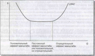 Эффект масштаба если долгосрочные средние издержки уменьшаются при увеличении производимой продукции – положительных эффект масштаба. Если долгосрочные средние издержки увеличиваются – отрицательный эффект масштаба.