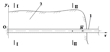 1 – трубопровід; 2 – ґрунтова засипка Рисунок 2.3 – Розрахункова схема трубопроводу напівнескінченої довжини