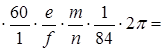 Для нарезания косозубого колеса используется более общая формула:  Нарезание зубчатого колеса по комбинированной схеме с радиальным врезанием включает в себя две стадии процесса. Первая стадия - радиальное врезание, когда фреза вместе с суппортной стойкой перемещается к заготовке. Продолжительность стадии с момента касания фрезы и заготовки до полного врезания фрезы на высоту зуба - 2.2 m. Вторая стадия - период профилирования зуба заготовки по его длине. В это время фреза вместе с фрезерным суппортом перемещается вверх в случае попутного фрезерования (либо вниз в случае встречного). Цепь вертикальных подач настраивается через сменные шестерни e, f, m, n, гитары подач, ведущее колесо которой устанавливается на делительном червяке z15=1 червячной пары стола, а ведомое на червяке z17=1 червячного колеса z18=84, сидящего на ходовом винте вертикальных перемещений  Расчетные перемещения для вертикальной подачи: 1 об стола  Уравнение кинематического баланса: 1 об стола  откуда  При нарезании косозубых колёс рекомендуется формула настройки: