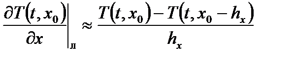 Выбирая узловые точки справа и слева от рассматриваемой точки x 0 на расстоянии шага hx (x=x 0 + hx, x=x 0 – hx), можно получить из (6.30) формулы право- и левосторонней разностей: