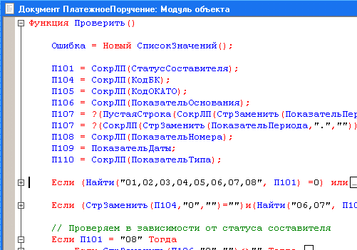 При просмотре модулей редактор позволяет объединять некоторые синтаксические конструкции языка в группы, сворачивать и разворачивать их. Использование группировки синтаксических конструкций позволяет лучше воспринимать различные части текста, а также переносить и копировать группы целиком: