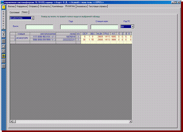 Рисунок. 17.6 Для получения текстовых справок о вагоне или отправке установите на строку с нужным объектом (вагон, отправка). Соответствующая информация появится в окне справок. В левой части окна расположены переключатели: