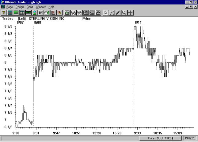 Это - классический пример хрестоматийной акции-дэмпера. MACR сообщил плохие ирнинги после звонка и акция внезапно отпала. на следующий день она гэпнула вниз и немедленно подверглась продаже. Мы наблюдали как эта акция пробила одно четко определенное донышко на первом минимуме, где мы ее и купили. На втором пике, покупка замедлилась и пришла продажа, где мы продали за? пойнта прибыли. На 3000 бумагах это могло дать быстрых 1,500 долларов прибыли. Я буду возвращаться к этому примеру время от времени, поскольку это хрестоматийный пример. ЗАРАБАТЫВАНИЕ ДЕНЕГ НА ПЛОХОЙ ИСТОРИИ Я возвратился из So.Calif недавно, где я родственнику преподавал мой метод торговли на акциях с плохими историями (Дэмперы). Я сделал им торговый счет на $ 20,000 и предупреждал их, чтобы они неукоснительно придерживались правил. Меньше чем за две недели они уже сделали почти $ 5,000. Дэмперы являются одним из наиболее надежных путей зарабатывания денег, из того что я повидал за всю свою историю инвестирования. Я знаю одного daytrader'a, он специализируется на dumper акциях, он больше ни во что не играет. Он читает плохие новости целый день и оценивает их. Суть в том, чтоб найти дэмпера раньше, чем он пробьет свое донышко. Они почти всегда восстанавливаются после падения, а некоторые поднимаются выше 4 долларов. Они ДОЛЖНЫ упасть более чем на 20 % от цены, по которой они торговались предыдущие дни, а лучшие дают 50 % вниз. Я обычно использую три способа для нахождения дэмперов: Смотрю CNBC до открытия рынка, чтобы узнать проблемные акции. О них обычно есть сообщения наряду с большими материалами дня до открытия рынка. Поместите эти акции на экран котировок и если это NASDAQ акция, Вы буете видеть снижение цены до открытия рынка, так что акцию с наибольшим снижением цены в процентах, сможете определить заранее. Определение минимумов будет обсуждаться позже. Просматриваю заголовки до открытия рынка, используя поиск по ключевому слову в окне заголовков. Ищите дэмперов словами типа "Below", "down", "cuts", и т.д. Я недавно поймал материал (11-07-96) про Advanced Tissue (ATIS) за пятнадцать минут до открытия рынка. Акция была снижена Morgan Stanley. Цена в предыдущие дни была $14 5/8. Она открылась на 9 3/8 и продавалась до 8 1/16, где достигла дна и быстро пошла к $ 11. Почти три доллара прибыли на 2000 бумагах принесло бы Вам 6000 долларов прибыли! Использую сканирующее программное обеспечение, которое показывает первую десятку самых упавших акций на NASDAQ. В данный момент я использую программное обеспечение MBTrading и "scammer" для поиска этих акций. Много других компаний предлагают такой сервис, например E-Trade, можно все это найти и в Internet. См. Приложение B для списка информативных сайтов. НИКОГДА не покупайте акции компании, по которой проводятся расследования любыми регулирующими органами, или акции компании, подозреваемой в незаконной деятельности или банкротстве. По этой акции могут останавливить торги и Вы зависнете в ней на месяц или больше. Лучшие дэмперы - те, которые испытывают снижение цены 30-50 % или более, из-за ирнингов, меньше ожидаемых на несколько пенни. Помните: рынок всегда горячится. Еще раз: наблюдайте, как истории влияют на акцию! Я постоянно просматриваю акции компаний, которые могут выйти из состояния банкротства. Они могут резко возрасти в цене, если их будущее выглядит блестяще. У меня как-то на овернайте произошло удваивание капитала на и