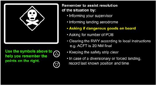 · Asking if dangerous goods on board · Asking for the number of Persons On Board (POB) · Avoiding ATC-caused go around