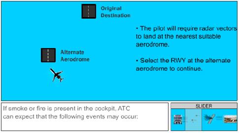 · The location of the nearest suitable aerodrome. · ATC should also provide details of the aerodrome as soon as possible: o RWY in use o length o surface o elevation o ILS and NAV frequencies · WX information should also be provided: o wind o visibility o ceiling o QNH
