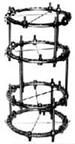 Рис. 160. Шина Белера для скелетного вытяжения. Функциональные методы Функциональными называются методы лечения без иммобилизации или с минимальной иммобилизацией повреждённого сегмента. Применяются относительно редко — в случае переломов небольших костей или трещин в трубчатых костях. Заключаются в обеспечении относительного покоя поражённого участка. Оперативное лечение · Закрытая репозиция и чрезкожный металлостеосинтез. Фиксация костных отломков посредством спиц или пластин, проводимых через кожу (рис. 162). · Малоинвазивный металлостеосинтез. Фиксация костных отломков пластиной, фиксируемой в костях винтами и расположенной подкожно. · · Наложение аппарата внеочагового компрессионно-дистракционного остеосинтеза. Фиксация костных отломков посредством аппарата внешней фиксации (например, аппарата Илизарова, рис. 162).