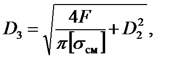 Наружный диаметр гайки D ;2 определяют из условия прочности ее тела на растяжение и кручение где [ σ ;р] = σ; т / S – допускаемое напряжение растяжения; F расч – увеличенная с учётом кручения сила F. Для метрических резьб в среднем F расч = 1,3 F; для трапецеидальных резьб F расч = 1,25 F; для упорных и прямоугольных резьб F расч= 1,2 F. Диаметр борта гайки D 3 находят из условия прочности борта на смятие где [ σ;см] – допускаемое напряжение смятия: [ σ;см] = (0,8…1,0) σ;т. Высоту борта гайки определяют из условия прочности борта на срез