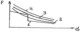 Для обеспечения минимального износа тяговая характеристика должна обеспечивать четкое включение аппарата и не иметь чрезмерных запасов (кривая 3).