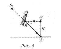 Из построения следует, что треугольник SBS1 равнобедренный, следовательно, SB = S1B = R. Расстояние от мнимого источника света S1 до точки A