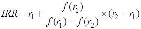 где r1 — значение табулированного коэффициента дисконтирования, при котором f (r1) > 0; r2 — значение табулированного коэффициента дисконтирования, при котором f (r2) < 0.