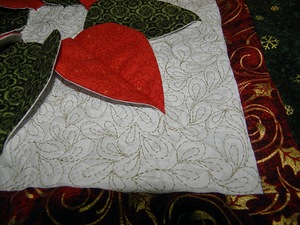Теперь можно стегать салфетку. Для бордюра можете сделать более крупный узор, а уголки украсить снежинками.