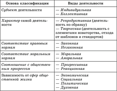 Основные классификации деятельности