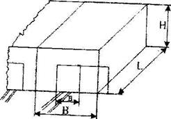 Рис. 1 Схема камеры к расчету потерь тепла через ее ограждения. Потери тепла через смежные (междукамерные) стены в расчет не принимаются. Чтобы правильно определить расчетную температуру для всех ограждающих поверхностей, необходимо выбрать возможный вариант планировки камер в цexe. Для определения коэффициента теплопередачи ограждений необходимо знать их конструкцию, т. е. толщину и материал. Рекомендуемая толщина наружных стен стационарных лесосушильных камер в два (510 мм) или в два с половиной (640 мм) кирпича, а внутренних, между смежными камерами, - полтора кирпича (380 мм). Ограждения сборно-металлических камер изготовляются в виде щитов толщиной 120 - 150 мм с каркасом из профильной стали, с двусторонней обшивкой их листовым металлом толщиной 2 мм и заполнением теплоизоляцией (шлаковата, стекловата, асбест и т. п.). Значение коэффициента теплопередачи кирпичных стен, потолка (из железобетонных плит с утеплителем), ограждений сборных камер указаны в таблице 33 приложения. Для камер любых конструкций в настоящее время рекомендуются каркасные (из профильной стали) двери; покрытые листами нержавеющего металла с теплоизоляцией между ними. С целью облегчения конструкции дверей их толщина может быть 80 - 100 мм с дополнительной теплоизоляцией (например, слой листового асбеста толщиной 4-5 мм). Для таких дверей следует принимать К = 0,6 Вт/(м2 град). Коэффициент теплопередачи пода принимается равным половине значения коэффициента теплопередачи наружной стены. При расчете площади пола ширина внешней зоны теплопотерь через фундаменты принимается равной 1.5 м. Общие теплопотери через ограждения камеры для зимних ∑Qогр.зим среднегодовых условий ∑Qогр.ср.находятся путем суммирования потерь тепла через все ограждающие конструкции. к) Удельный расход тепла на потери через ограждения (на 1 кг испаряемой влаги) для зимних условий: