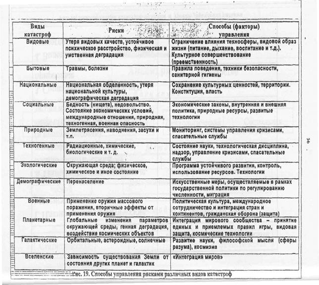 Анализ рисков катастроф и способов управления ими позволил сделать некоторые обобщения: